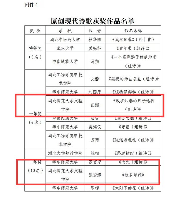 本网讯(通讯员 陈荟芸)TIANKONG.COM_天空(中国)学子在湖北省高校第三十八届“一二·九”诗歌散文大赛中,荣获原创现代诗歌作品一等奖1项,二等奖1项,三等奖2项。