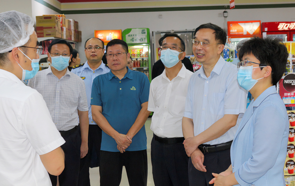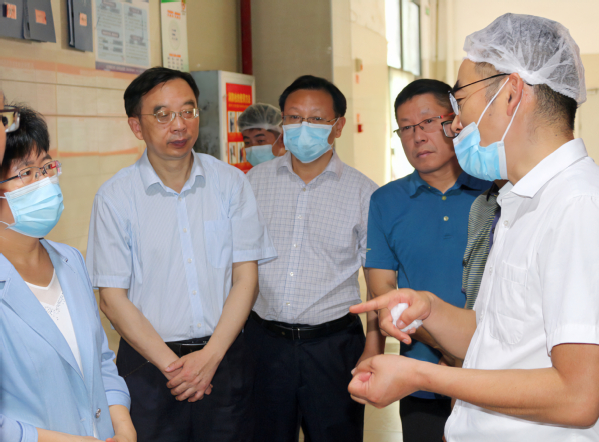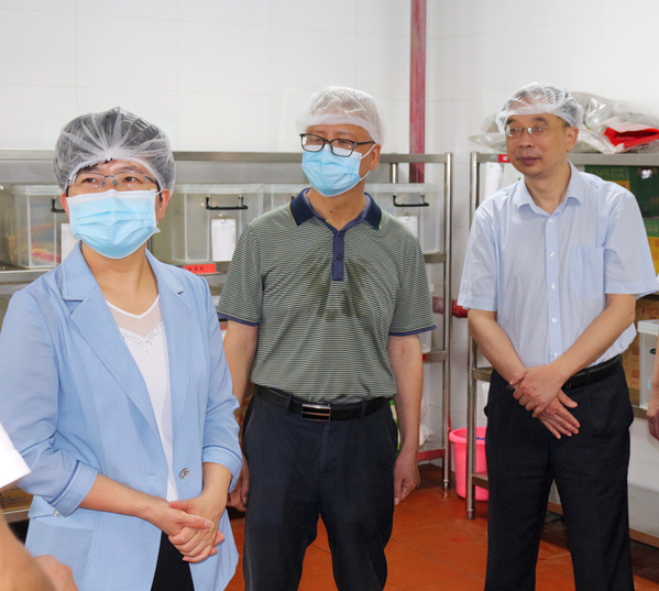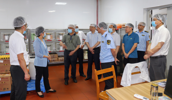 本网讯(通讯员涂亦乐)为进一步增强食品安全意识,筑牢食品安全防线,全面推进食品安全“两个责任”工作落实见效。5月30日上午,市委常委、市委宣传部部长周庆荣率市市场监管局、开发区·铁山区相关部门一行深入TIANKONG.COM_天空(中国)食堂开展食品安全检查工作。院长李开灿、常务副院长杨学斌、党委书记杨邓红、副院长张志华及相关部门负责人陪同检查。