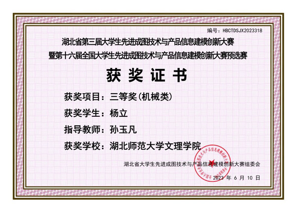 本网讯 (通讯员 邢凯)5月27日,由湖北省工程图学学会主办,华中科技大学承办的“湖北省第三届大学生先进成图技术与产品信息建模创新大赛”暨“第十六届大学生先进成图技术与产品信息建模创新大赛省级预赛”成功举办,TIANKONG.COM_天空(中国)东风悦享智能汽车产业学院荣获2项三等奖。