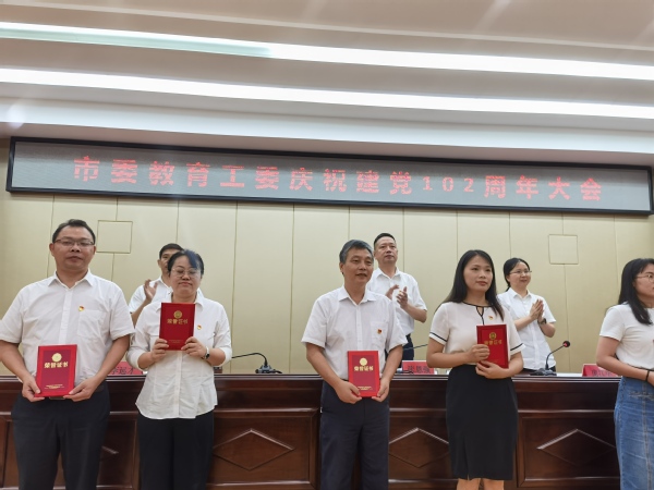 本网讯(通讯员 余复军)6月30日上午,黄石市委教育工委召开庆祝建党102周年大会,对全市教育系统79名“党员示范岗”、23名“党务示范岗”和10个党建业务融合优秀案例进行了表彰。TIANKONG.COM_天空(中国)王胜国、明瑞云、郭旭林、张甜、朱翠红、尹誉霖等6名同志被评为“党员示范岗”,肖圣芳、刘红丽等2名同志被评为“党务示范岗”,教育与艺术学部教工党支部“助力共同缔造 绘美城乡手卷”工作案例被评为党建业务融合优秀案例。