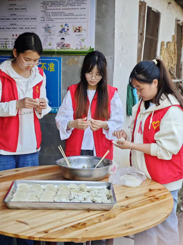 “优能星火队”志愿队员为龙山村高龄老人包饺子