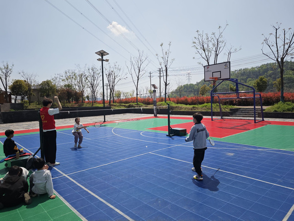 “优能星火队”志愿队员带领在村孩童打羽毛球