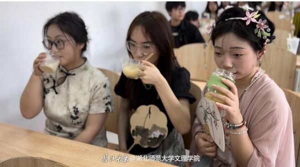 中国是茶的故乡,也是茶文化的发源地。“明冰沃新茗,妙饮夸四筵。”学生作制宋代冰茶,在碎冰中放入牛乳、果汁,再将茶水与之融合。既品茶,又品味历史文化的魅力。
