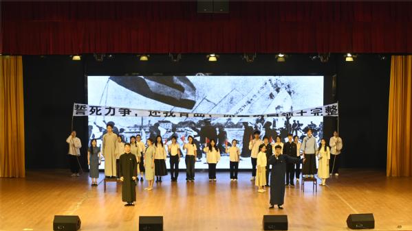 此次大会将艺术思政与年度表扬活动相结合,教育与艺术学部带来的歌舞表演《心声》以优美的舞姿,再现了藏族人民的原始美和心灵美,用舞蹈的体态语言,用歌声“唱支山歌给党听”,体现“五个认同”扎根在各族人民心中。校朗诵团带来的诗朗诵《青年掌灯正韶华,五四烈火燃华夏》,通过情景再现,表现了革命先辈为国家独立、民族解放而进行的斗争,激发了广大青年敢于奉献、坚定信念的革命情怀,增强了青年学子的使命感和责任感。校音乐社和器乐社带来的合唱《如愿》传递温暖和力量,表达了青年学子们身为中华儿女的自豪感以及投身于祖国事业发展的决心,正如歌曲所唱“与你相约,一生清澈,如你年轻的脸”。思政与艺术的融合,沉浸式展现了新时代青年对党的忠诚,以青春之我,唱青春之歌;以青春之歌,咏青春之志。