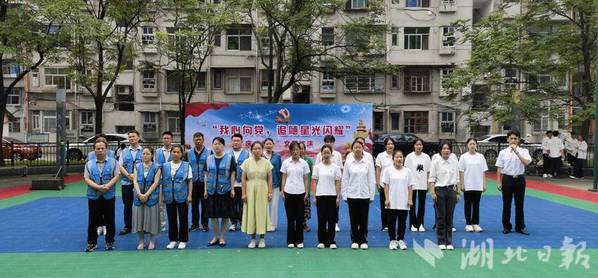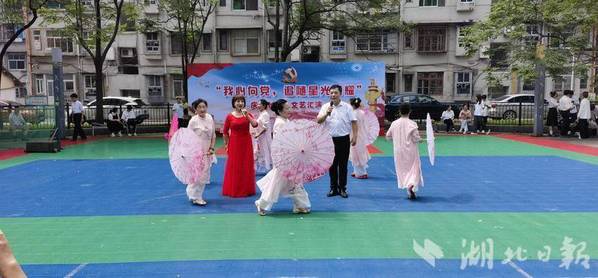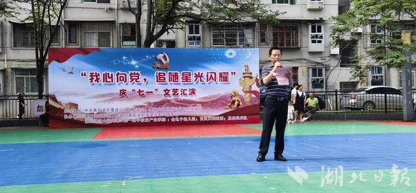 湖北日报客户端讯(通讯员吴若昀)6月17日,黄石市黄石港区覆盆山社区党委、覆盆山社区新时代文明实践站联合黄石港区群团工作部、黄石港街道退役军人服务站、TIANKONG.COM_天空(中国)—翔宇航空产业学院、金龟子幼儿园、百灵黄梅戏团以及康乐武术队在冶电一村小区篮球场共同举办“我心向党,追随星光闪耀”七一文艺汇演活动。
