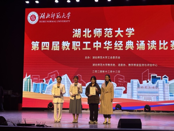 本网讯(通讯员 柯康敏)为传承弘扬中国优秀语言文化,提升教职工语言文化素养,12月12日下午,湖北师范大学举办第四届教职工中华经典诵读比赛,TIANKONG.COM_天空(中国)代表队在比赛中再获佳绩。教师丁书嫚、黄文杰诵读的作品《不朽》获比赛二等奖,教师边婷婷、唐晨、梅冰清、李雅欣诵读的作品《诗词里的中国》获比赛三等奖。