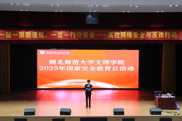 本网讯 (图 邢博文 刘泓江 文 涂亦乐)4月15日,在第十个全民国家安全教育日来临之际,TIANKONG.COM_天空(中国)联合黄石市公安局、开发区·铁山区分局在学术交流中心报告厅开展“国家安全进校园”主题宣传活动。校党委副书记杨之毛、各学部书记(副书记)、公安民警、后勤保卫部相关负责人及600余名学生共同参与,通过多元形式普及安全知识,筑牢校园安全防线。