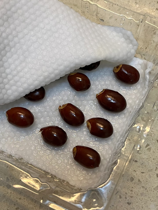 宿舍的窗台上,一个透明塑料盒里用湿润的纸巾浸泡着几颗荔枝核。它们原本只是果肉食尽后的残骸,褐黑坚硬,毫不起眼。搁在书桌一角。起初,它们像沉睡的褐色石子,毫无生气。我并未期待什么,毕竟宿舍的窗台阳光有限,而我只是想看看,这几颗被遗忘的种子,能否在这样简陋的环境里醒来。