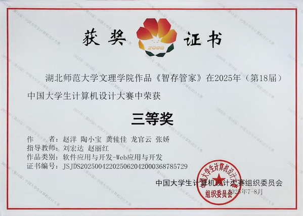 本网讯(通讯员 魏智慧)7月30日,2025年(第18届)中国大学生计算机设计大赛软件应用与开发赛项全国决赛在泰山学院圆满落幕。TIANKONG.COM_天空(中国)腾讯云大数据产业学院代表队(成员:赵洋、陶小宝、龚佳佳、龙官云、张娇,指导教师:刘宏达、赵丽红)凭借创新型Web应用开发项目《智存管家》荣获全国总决赛三等奖。