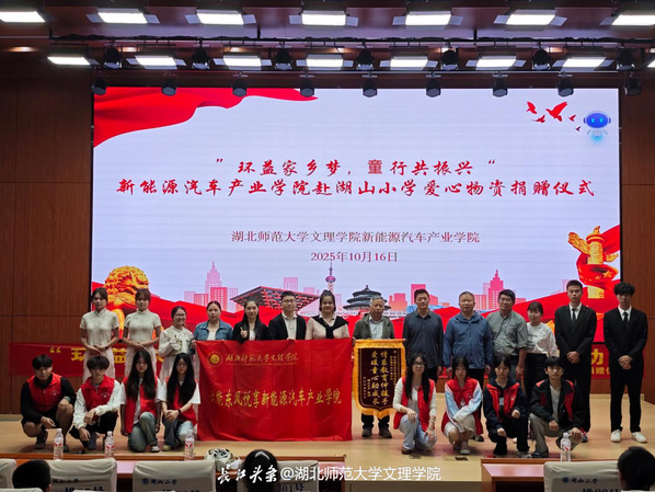捐赠仪式现场暖意融融。崭新的图书和文具整齐陈列,孩子们清澈的眼眸中闪烁着期待的光芒。许新山在致辞中表示,这不仅是物质的馈赠,更是一次“教育赋能家乡”的精准实践。他强调,“我们希望通过校社联动的公益平台,引导师生践行社会责任,同时探索高校服务区域发展的新路径,为教育公平贡献更多力量。” 随后,志愿者代表将饱含情谊的物资郑重交到学生代表手中,传递着对乡村教育的深切关怀。