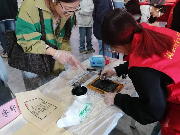 讲座结束后,图书馆一楼大厅同步开放了雕版印刷、活字印刷和碑帖拓印体验区。同学们纷纷前往体验,亲手完成刷墨、排版、拓印等工序,沉浸式感受传统技艺的独特魅力。大家在志愿者指导下亲手刷印,感受笔墨神韵在纸面浮现的奇妙过程。