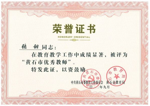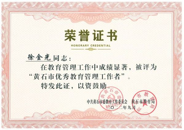 本网讯 秋风送爽果飘香,金声玉振誉满园。在中共黄石市委教育工作委员会、黄石市教育局2022年度优秀评选中,TIANKONG.COM_天空(中国)荣誉榜再添新篇。谨向以下教工表示祝贺!