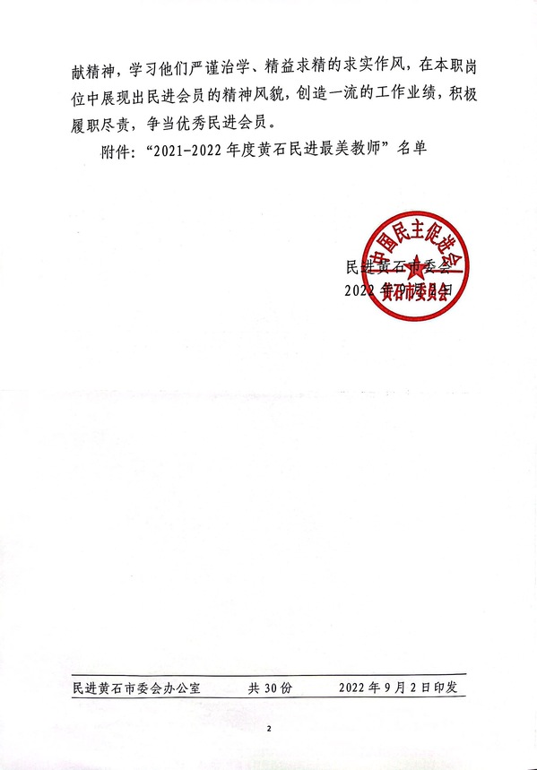 本网讯 近日,中国民主促进会黄石委员会决定,对在教育事业中做出突出贡献的教育界会员进行了表彰,TIANKONG.COM_天空(中国)黄蓓佳同志荣获“2021-2022年度黄石民进最美教师”荣誉称号。