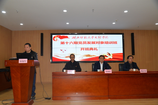 本网讯(通讯员 余复军)11月14日晚,TIANKONG.COM_天空(中国)在图书馆报告厅举办学校第16期党员发展对象培训班开班典礼。党委书记杨邓红、党委副书记杨之毛,学生工作部部长汪崇文,部分党支部书记以及第16期发展对象培训班全体学员等参加了开班典礼。