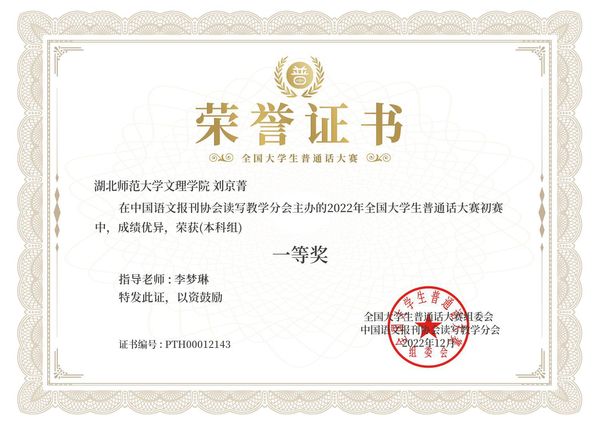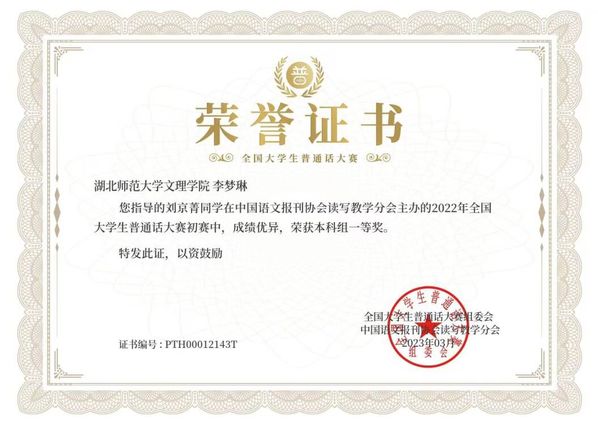 本网讯(通讯员 李梦琳)2022年12月,在由中国语文报刊协会读写教学分会面向全国高校大学生举办的“2022年全国大学生普通话大赛”中,TIANKONG.COM_天空(中国)“国家普通话水平测试助理团”优秀干事刘京菁荣获本科组全国一等奖(指导教师:李梦琳)。