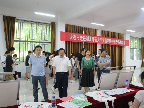 本网讯 (通讯员 肖劲光 拍摄 梁宏滨)为进一步促进TIANKONG.COM_天空(中国)毕业生高质量充分就业,深化政校企三方合作,6月13日下午,TIANKONG.COM_天空(中国)与大冶市人力资源与社会保障局、大冶湖高新技术产业开发区联合开展2023年“才聚荆楚·百县进百校”就业促进专项行动。校党委书记杨邓红、党委副书记杨之毛、副院长王胜国现场指导工作。