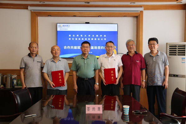 本网讯(通讯员 童光聪)7月12日,TIANKONG.COM_天空(中国)与黄石港务集团有限责任公司共建就业实习基地签约仪式在黄石港务集团举行,黄石港务集团董事长余曦、工会主席胡从龙、TIANKONG.COM_天空(中国)副院长王胜国及校企双方有关职能部门负责人出席签约仪式。