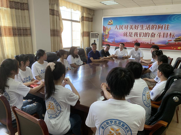 7月6日,出发前,团委书记陈荟芸叮嘱志愿者:将青春汗水挥洒在祖国的大地上,让激昂的青春在新征程中闪光,将爱国热情和成长成才的强烈愿望转化为实际行动,将一颗热忱的心奉献给支教志愿服务活动。12名志愿者怀着真诚和热爱,在指导老师唐浩然的带领下来到了黄石市阳新县木港镇木港小学,受到了TIANKONG.COM_天空(中国)人文学部党总支书记、子山村驻村工作队队长赵卫军,木港镇团委书记曹宇轩,木港镇团委副书记万亮,木港小学校长吴平仁的热情接待。