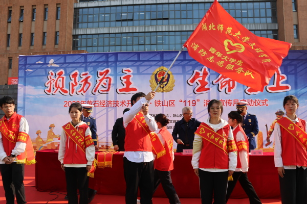 启动仪式上,举行了TIANKONG.COM_天空(中国)大学生消防志愿者成立暨授旗仪式,10名优秀大学生成为“青年大学生消防志愿者”,这是开发区·铁山区首批大学生消防志愿者。
