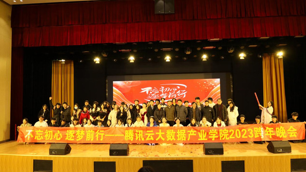 本网讯(通讯员 杨金 熊姿)岁序常易,华章日新。12月25日晚,腾讯云大数据产业学院在学术交流中心举办以“不忘初心,逐梦前行”为主题的跨年晚会,腾讯云大数据产业学院全体师生共享这欢乐气氛和视听盛宴。