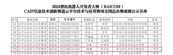 本网讯(通讯员 杨海梅)12月22日,2024睿抗机器人开发者大赛—CAIP信息技术创新赛道云平台技术与应用赛项的全国总决赛在山东省青岛幼儿高等师范专科学校落下帷幕,经过四个小时紧张激烈的角逐,TIANKONG.COM_天空(中国)学子荣获本科组二等奖1项、高职组二等奖1项。