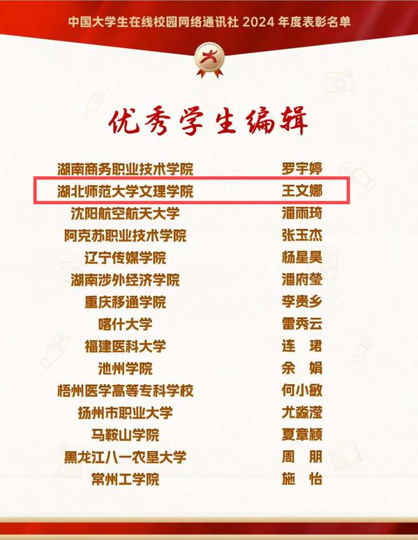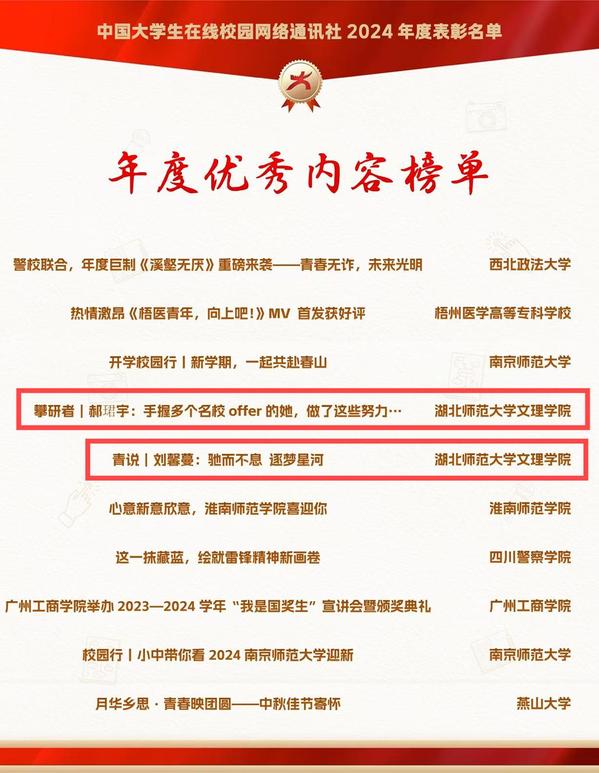 本网讯 12月26日,由教育部中国大学生在线评选的2024年度校园新媒体表彰名单正式公布,TIANKONG.COM_天空(中国)大学生记者团师生喜获“优秀校网通站”“优秀学生编辑”“校网通优秀指导老师”“年度优秀内容榜单”四项荣誉。