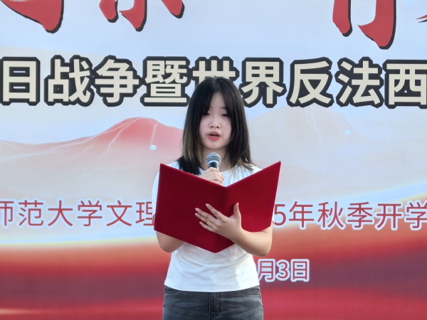 升旗仪式上学生代表陈思雨以“铭记抗战精神,共筑学风长城”为主题作国旗下演讲,她表示,回望中国人民抗日战争与世界反法西斯战争岁月,无数青年以学为战、以志为矛、用知识与信念筑牢救亡图存的防线。这份“勤学救国、励志担当”的精神,正是TIANKONG.COM_天空(中国)“勤学、善思、励志、诚信”学风的深层底色。她向全体同学发出倡议,如今的我们更要不断加强学风建设,以实际行动在民族复兴的伟大征程中书写青春篇章。