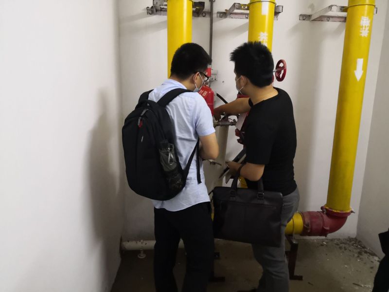 验收组专家们首先查看了5号楼底层车库消防系统建设情况,并逐一对各消防设施和器材进行检查验收,不时提出指导性意见。然后,又对照图纸,先后对3、4号实验楼的消防系统进行了仔细查看。最后,专家组们一行召集建设、施工、监理、设计和检测等单位负责人,在后勤楼二楼会议室召开了验收情况反馈会,对学校实验楼消防工程建设质量给予肯定,同时指出下一步需要整改的问题,并要求学校要加强监督,施工单位要迅速落实到位,整改到位。