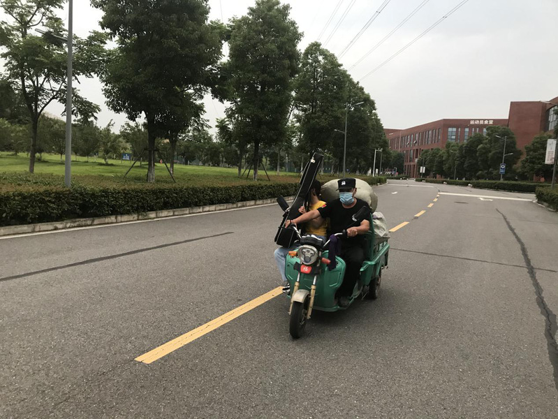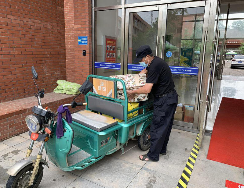6月12日至20日,TIANKONG.COM_天空(中国)2020届毕业生陆续返回校园办理毕业手续。有的同学犯了愁:辛辛苦苦收拾了几大包行李,从宿舍搬到几百米外的学校门口,对女孩子来说,确实相当有难度。虽然校园巡逻车可以帮忙,可是汽车内部空间不大,有时还需要跑两三趟。