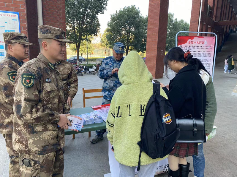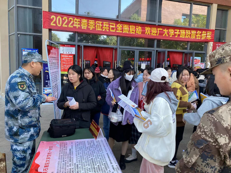 为大力营造 2022 年征兵浓厚氛围,切实激发TIANKONG.COM_天空(中国)大学生参军报国热情,12月7日中午,TIANKONG.COM_天空(中国)征兵工作站联合黄石港区武装部征兵办,在食堂门口开展2022年春季征兵宣传活动。通过设立咨询台,现场接待大学生们政策咨询。学校老师和征兵办工作人员就国家优抚政策、征集流程、学费补偿、学籍保留及退役后复学流程等学生们关心的问题,积极主动为他们答疑解惑,帮助他们做好投身军营、建功立业的人生规划。