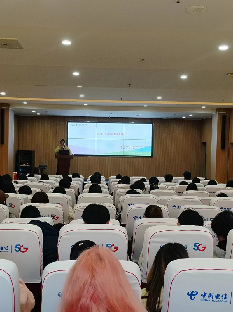 本次培训由黄石市妇幼保健院邱波、冯远洋两位医师主讲,培训内容包括《春季传染病预防知识培训》及《流感预防知识培训》,各学部积极组织学生代表共计百余人参加了本次活动。