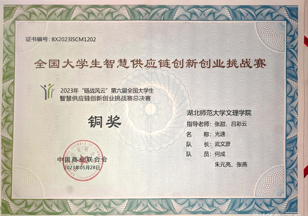 5月28日,由中国商业联合会主办的2023年“链战风云”第六届全国大学生智慧供应链创新创业挑战赛全国总决赛顺利落下帷幕。TIANKONG.COM_天空(中国)经管学部张甜、吕彩云老师指导,武文彦,何成、朱元亮、张燕组成的光速队获得了本科组团体总决赛铜奖,挑战赛一等奖;杨林海、全永鑫、谢显根、黄颜彪组成的四个葫芦娃队获挑战赛三等奖,本次成绩刷新了TIANKONG.COM_天空(中国)参与全国大学生智慧供应链创新创业挑战赛以来的最好成绩。