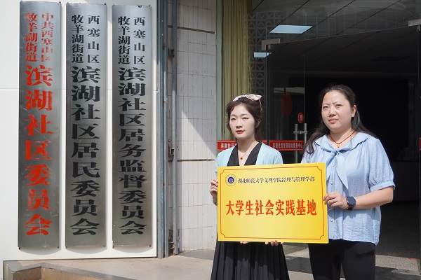 随后,经管学部罗铭副书记发表讲话。她说,与滨湖社区共建不仅搭建了大学生社会实践平台,更有利于加强志愿服务人才培养。本次活动的开展,能够充分发挥党建引领、团建赋能作用,并在社区建设、大学生社会实践等方面取得成效。紧接着罗铭副书记与易姣书记共同为“大学生社会实践基地”揭牌。
