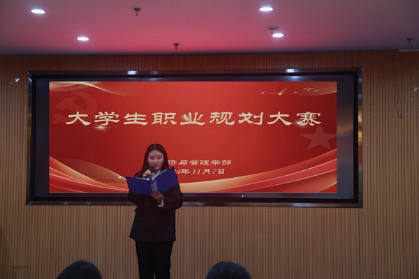 加强大学生生涯教育和就业指导,增强大学生生涯规划意识,提升职业生涯规划的能力117日下午2点半,经济与管理学部在图书馆报告厅举办了“梦想引领方向,规划塑造未来”大学生职业规划大赛。鲁千霞、姚海榕、许春想、陈美阳、渣梦丽五位来自不同专业的专任教师担任赛评委,学部党总支副书记罗铭及全体辅导员出席本次大赛。
