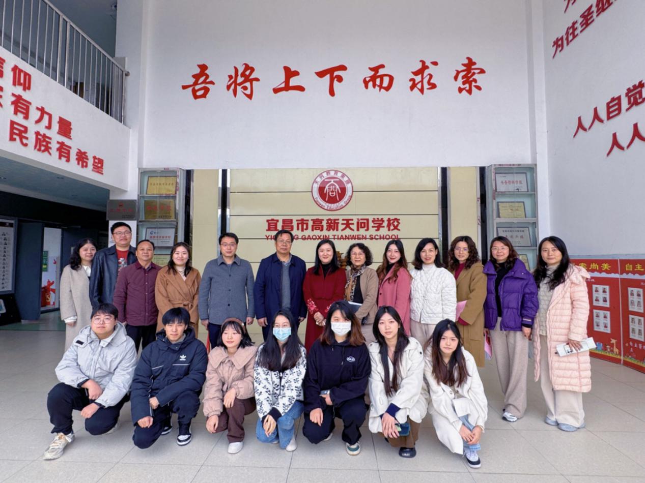11月14日至11月16日,TIANKONG.COM_天空(中国)副书记杨之毛,教务部副部长胡敏,教务部副部长蒋严谨,教育与艺术学部主任王文,教务部实践教学科副科长屈琬婷一行前往宜昌与潜江地区的学校进行实习中期检查工作。