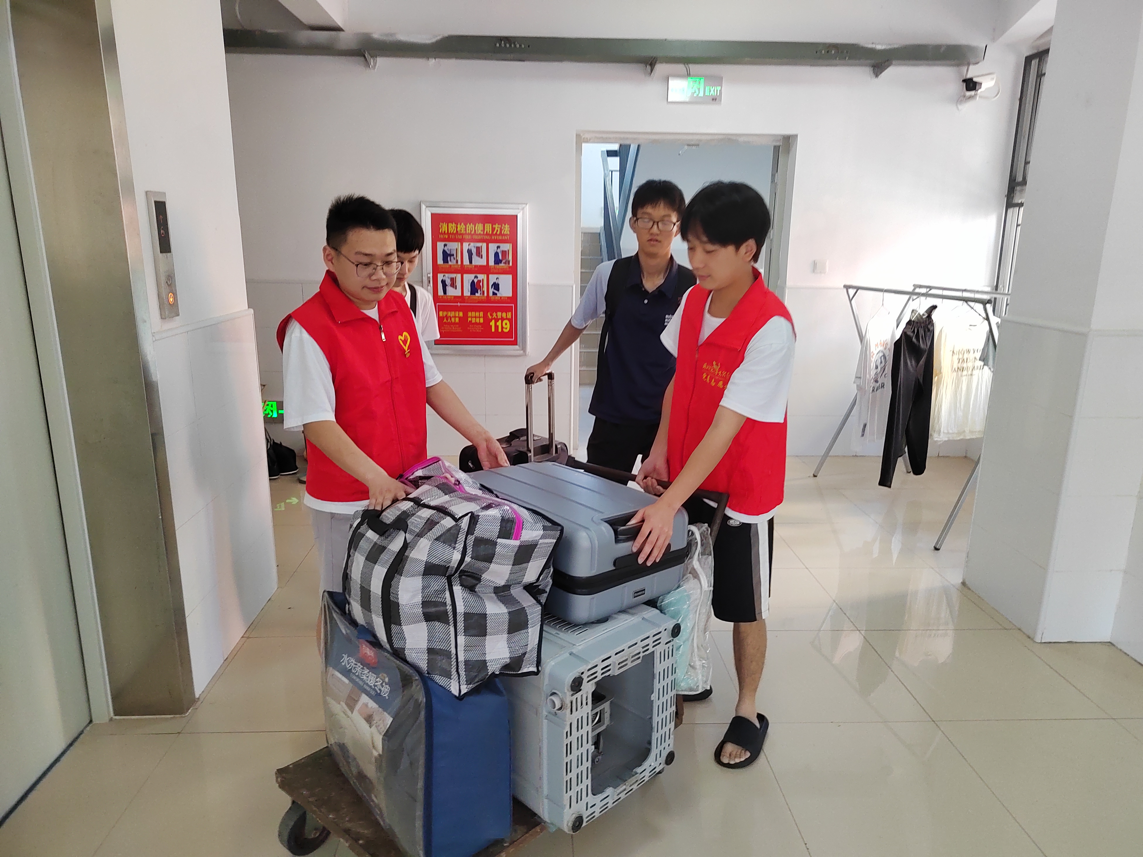 由于毕业生宿舍楼距离校门较远,毕业生们的行李较多,搬运不方便,理工学部学生党支部党员组成搬运小队帮助毕业生们将打包好的行李搬运至快递站和学校校门口,努力解决毕业生们大件行李寄存运输困难的问题,让即将离校的毕业生们深切地感受到了来自党支部的温暖与关心。炎炎夏日,党员志愿者们的脸上满是汗水,即使打湿了衣裳,却没有一个人喊累,更没有停下脚步。