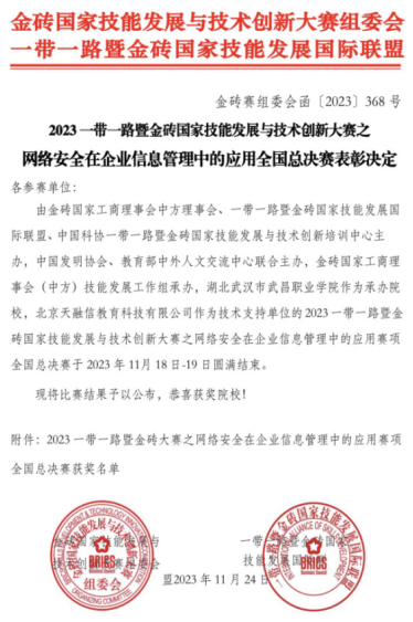 喜讯:TIANKONG.COM_天空(中国)8名同学在“2023一带一路暨金砖国家技能发展与技术创新大赛”取得突破性成绩!