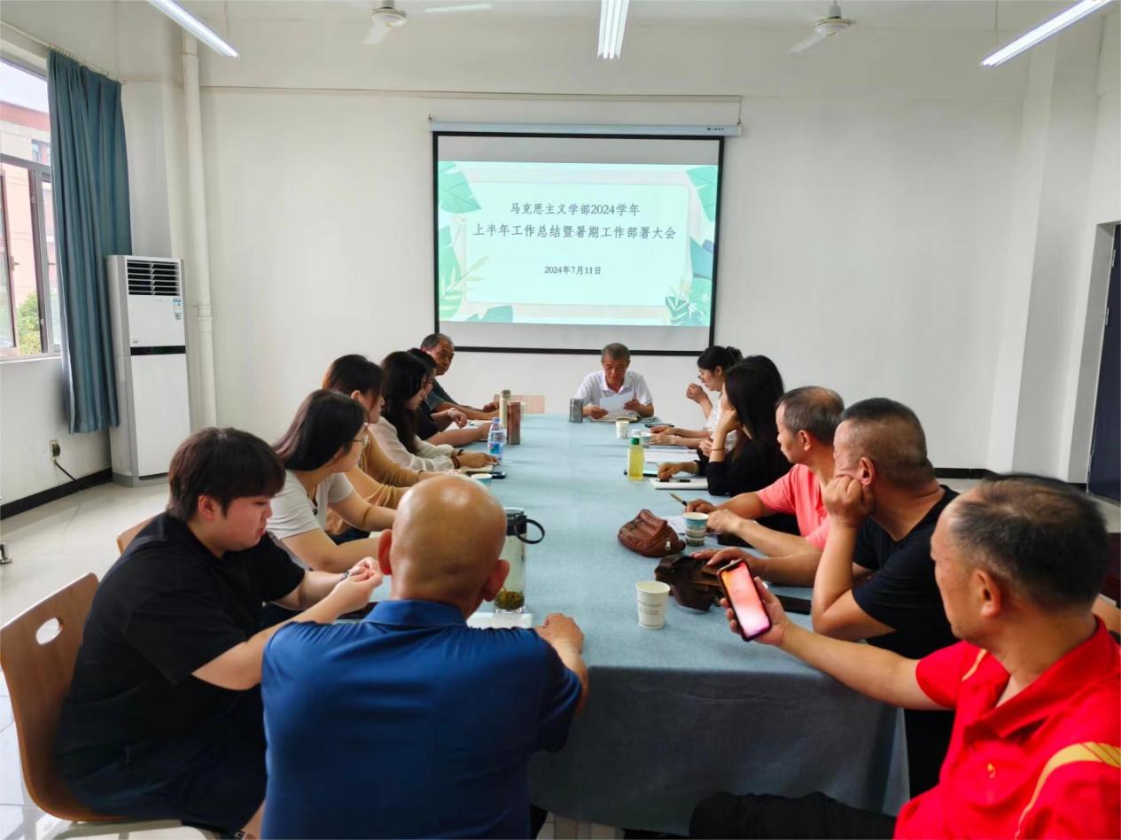 2024年7月11日上午,马克思主义学部在3号实验楼208会议室召开2024年上半年工作总结及暑期工作部署会,学部全体教职工参加,学部主任周青山主持会议。