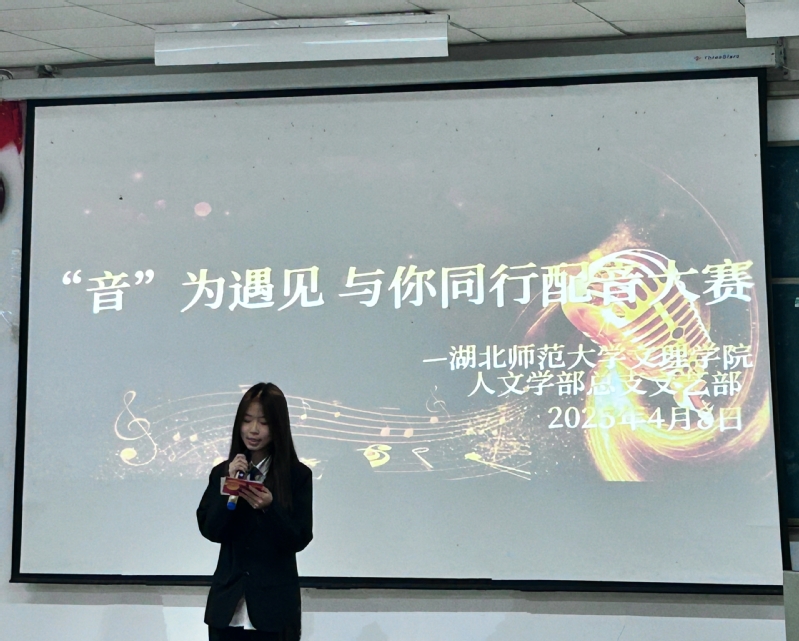 为丰富校园文化生活,激发学生艺术热情,在学部党总支书记周景斌的指导下,人文学部团总支于48日晚举行"''为遇见,与你同行"主题配音大赛。大赛特邀人文学部团总支书记胡文玉、辅导员杨峰、张思思担任评委,学生会主要干部共同参与评审。活动现场,参赛选手以精准的台词把控和情感演绎,对经典影视片段进行创新诠释。选手们不仅展现了扎实的语言功底,更通过声音塑造实现了角色与时代的对话。