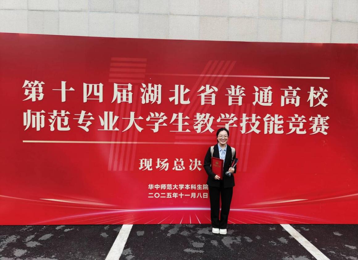 11月8日,第十四届湖北省普通高校师范专业大学生技能竞赛初中历史组决赛圆满落幕。我院历史专业2202班涂紫怡同学凭借过硬的专业功底和出色的临场表现,历经一天的紧张角逐,最终荣获二等奖,为学院赢得了荣誉。
