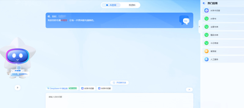 为进一步丰富图书馆服务功能,强化智能服务,高效赋能读者的阅读学习,图书馆“AI馆员”已上线运行!