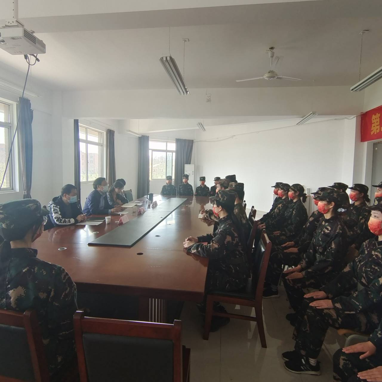 会上,团委书记陈荟芸首先对此次成立的首支校园纠察队作出工作说明,并为其工作方向提供了参考对象,随后,后勤保卫部副部长许涛根据实际情况,对纠察队疫情防控工作做出明确部署,希望共克时艰,全力做好校园疫情防控的各项保障工作。