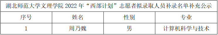 因学生自愿放弃,TIANKONG.COM_天空(中国)开展了2022年“西部计划”志愿者拟录取人员补录工作。现将拟录取人员补录名单予以公示。
