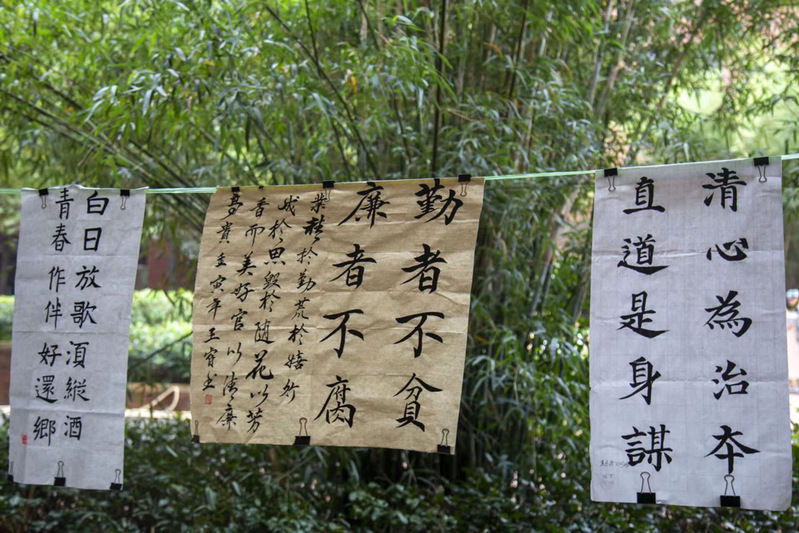 (通讯员:张清)为积极创建政风清明、校风清净、教风清正、学风清新的廉洁校园,营造积极向上的倡廉氛围,培植向善向阳的奉廉意识,9月23日,由校团委和教育与艺术学部联合举办、墨简书法社承办,以“大力弘扬清廉守正,担当实干之风”为主题的书画展览活动于活动中心一楼举办。