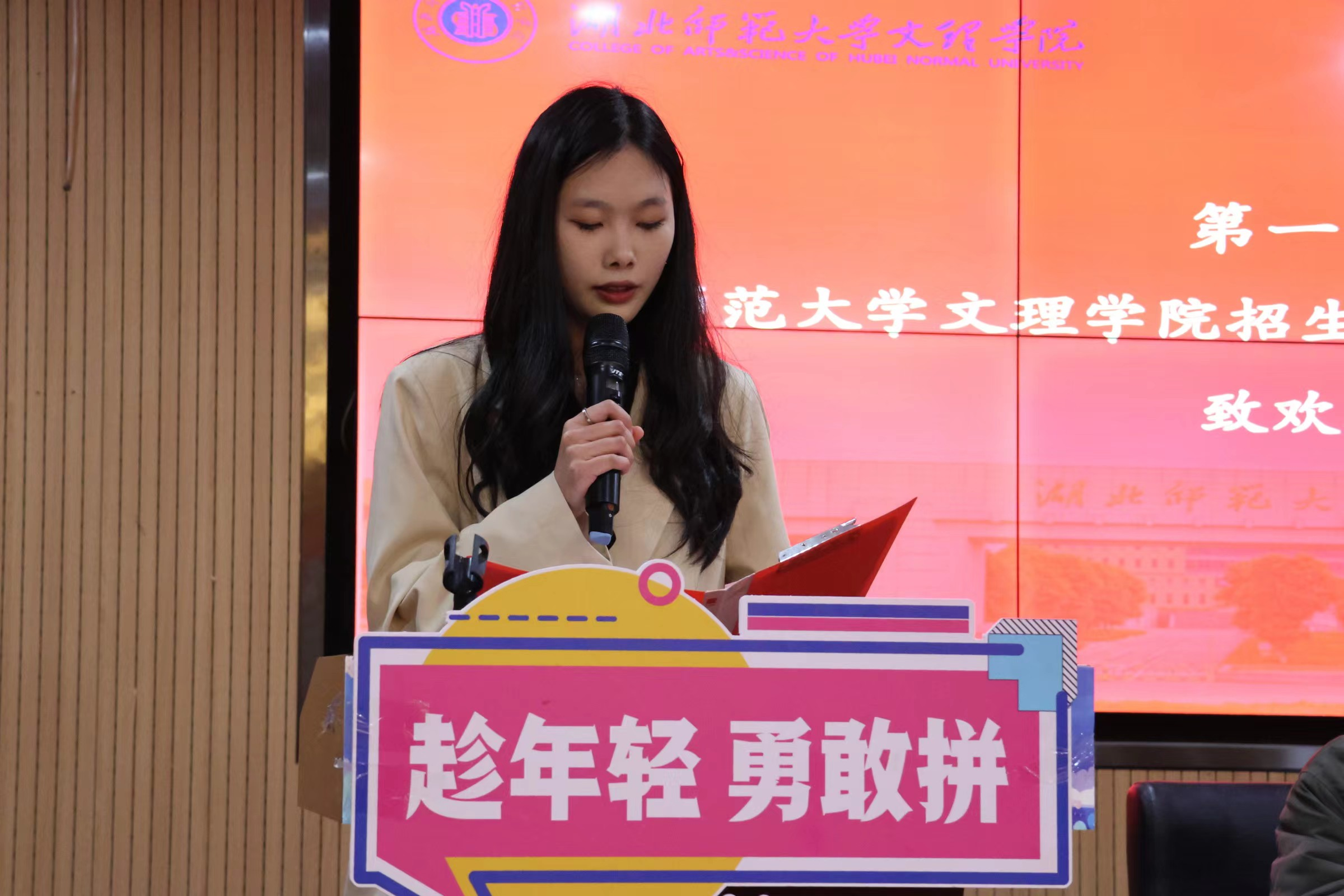 会议第一项,TIANKONG.COM_天空(中国)学生工作部招生宣传媒体中心负责人杨洲致欢迎词,她对湖北师范大学团学骨干表示欢迎与感谢,同时表明交流会能为两校提供一个相互交流相互学习的机会,促进两校学生组织进步与成长,希望通过本次活动能真正的加强学校学生组织管理制度,促使两校团学工作进一步发展。