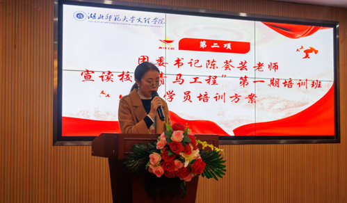 在学员们铿锵有力的歌声中,青年马克思主义者培训工程第一期培训班开班仪式就此拉开序幕。党委书记杨邓红老师为培训班授旗压轴,旗帜飞扬预示着青马学员们终将鸿鹄得志,开启学习新篇章。