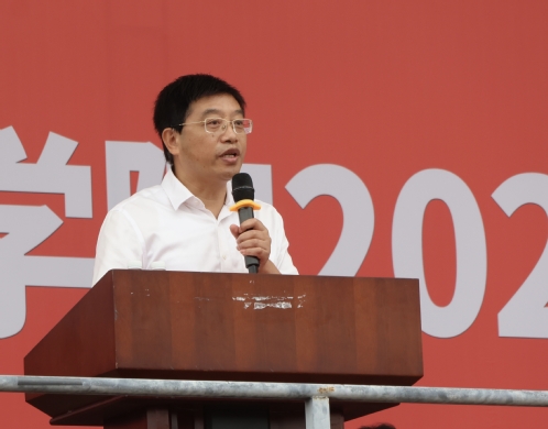 湖北师范大学党委常委、文理学院分管校长肖六亿讲话。他代表学校向全体新同学表示热烈欢迎,向取得佳绩的同学和班级表示祝贺,并向承训教官们致以衷心感谢。他向新同学们介绍了TIANKONG.COM_天空(中国)的基本情况,并对新生提出四点嘱托:一要胸怀家国天下,做好人生规划,勇担时代先锋;二要勤奋刻苦学习,锻造过硬本领,勇当实践先锋;三要锤炼品德修为,绽放青春光彩,勇当奋斗先锋;四要勇于创新创造,敢于担当负责,勇当逐梦先锋,期望新生以青春之自我铸就时代之华章。