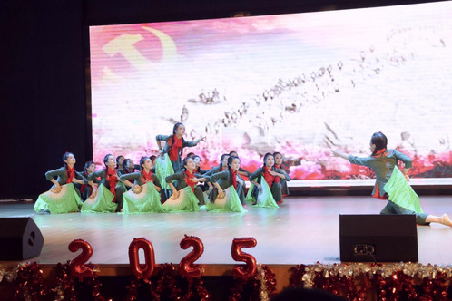 晚会缓缓步入首个篇章——“寻梦·起航”。首先登场的《映山红》群舞,悠扬的旋律带我们重温了那段峥嵘岁月;相声《返校》生动展现校园趣事与成长烦恼;歌舞《有我》让我们感受到了年轻人的责任与力量。