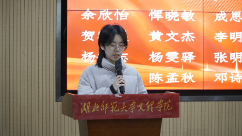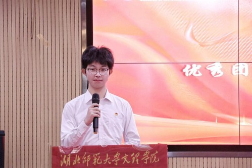 优秀团员代表毛宇轩上台发言。他首先向新团员表达了热烈的欢迎和祝贺,并提出五点与大家共勉:一是坚定理想信念,筑牢思想根基;二是勤奋刻苦学习练就过硬本领;三是勇于担当作为,积极奉献社会;四是紧密团结协作共同成长进步;五是珍惜团员身份,矢志再创辉煌。