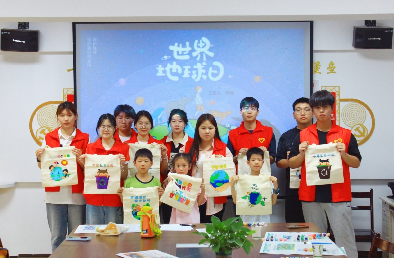 2025年4月26日下午,人文学部团总支青年志愿者协会深入南岳社区,开展世界地球日主题志愿活动。活动以"知·行·思"三维模式创新环保教育,通过"环保课堂"多媒体时空穿越展示、创意帆布袋绘制、"成长对话"环保承诺等环节,带领30余名社区儿童认知生态现状、践行环保理念。孩子们在绘制"绿色宣言"帆布袋时,用画笔勾勒出垃圾分类、未来环保城市等图景,并许下"多骑自行车""使用环保袋"等成长承诺。活动特别设置课业辅导环节,将环保知识融入学科教学,实现生态意识与知识学习的双重提升。